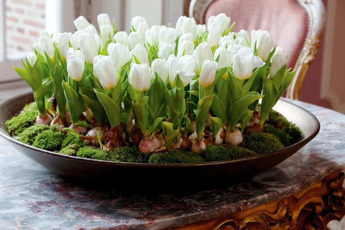 I tulipani bianchi sono sinonimo di eleganza. Il loro stelo slanciato e i petali dalla struttura quasi geometrica sono un esempio di architettura naturale. Amano il pieno sole, quindi sono perfetti per terrazze e balconi con molta luce naturale. Quando crei la tua composizione, è meglio posizionarli nella parte posteriore dell’insieme a causa della loro altezza.
