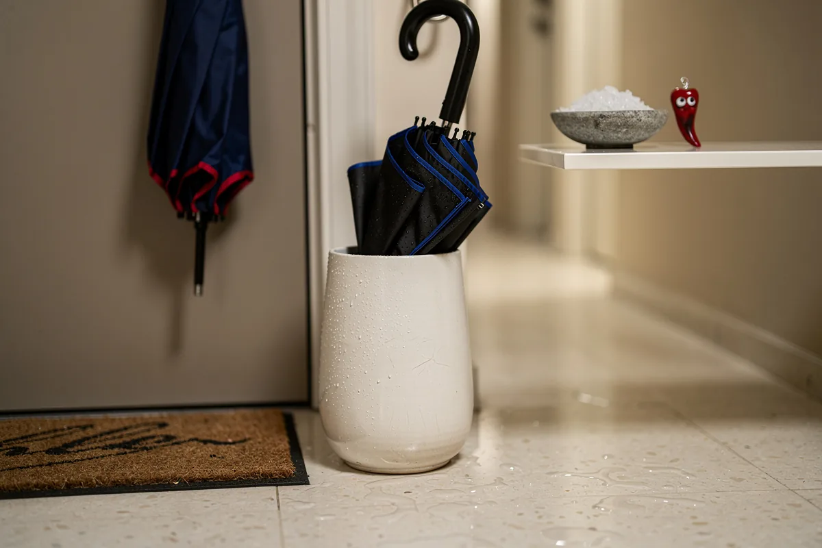 - Un portaombrelli stabile con vaschetta raccogligocce per non bagnare il pavimento.