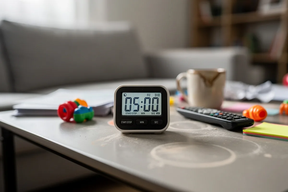 Il disordine domestico è spesso “di superficie”: vestiti abbandonati, tazze sul tavolo, giocattoli a terra, posta aperta ovunque. Non servono prodotti miracolosi, ma micro-interventi mirati. La forza del metodo sta nel limite di tempo: un timer da cucina, il cronometro dello smartphone o un piccolo timer digitale IKEA bastano per trasformare un compito infinito in una sfida breve e concreta.
