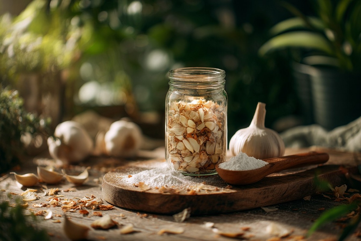 La miscela di bucce d’aglio e bicarbonato si conserva bene fino a circa due settimane se tenuta in un barattolo ermetico, in un luogo fresco e asciutto, lontano da fonti di calore e umidità.