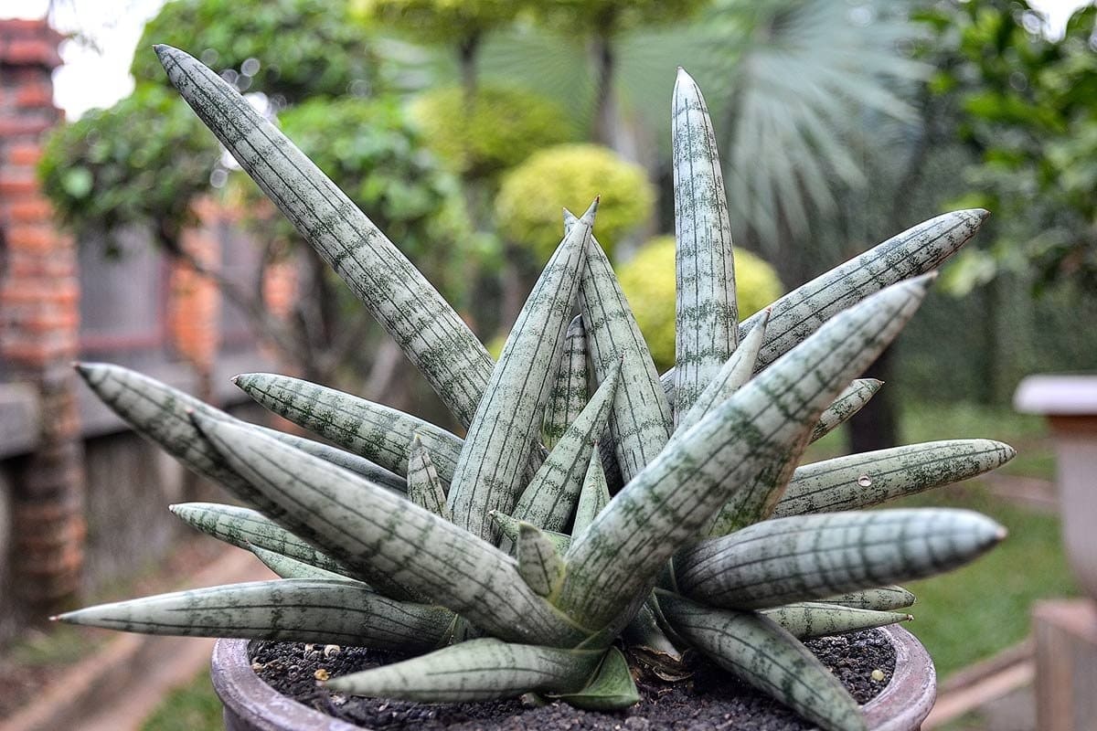 La sansevieria è riconoscibile per le sue foglie lunghe, rigide e verticali. L’aspetto grafico e strutturato la rende molto usata negli arredi moderni e minimalisti. È considerata una delle piante da interno più resistenti: può vivere con poca luce, tollera bene i periodi di siccità e richiede pochissime cure.