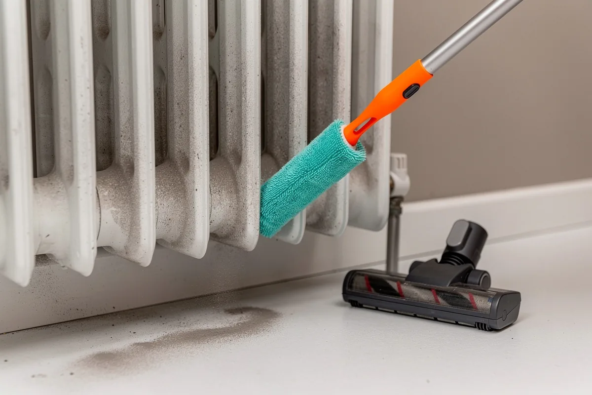- Dietro e sotto i radiatori: qui si accumulano “feltri” di polvere che, quando il termosifone è acceso, vengono rimessi in circolo. Usa uno scovolino lungo o una spazzola apposita (esistono kit specifici Mastro Lindo per termosifoni) e passa poi l’aspirapolvere con bocchetta stretta.