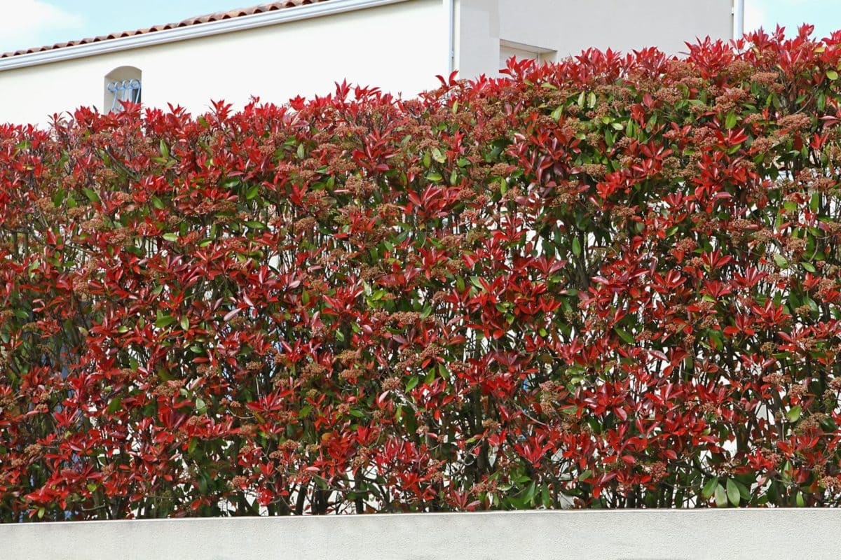 I germogli rossi conferiscono un valore ornamentale in più a un arbusto che funge anche da schermo verde.